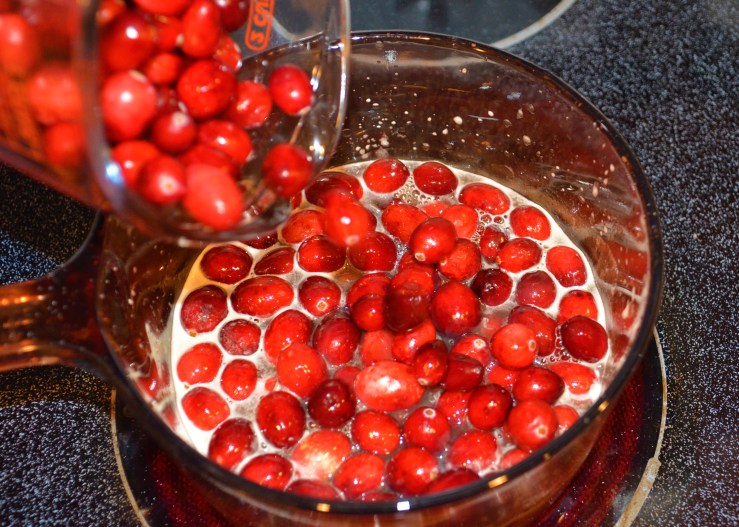 This part take a little patience but trust me, not much! Soon you will start hearing a popping sound. That is the cranberries heating up, popping, and releasing that scrumptious tart flavor cranberry is known for. Before too long most all of the cranberries have popped and your sauce begins to thicken. The orange juice is going to make it bubble quite a bit so don’t wander off. The next thing you know, Voila!, you’ve made a delicious sauce that can be used on the main course or days afterwards on turkey sandwiches.