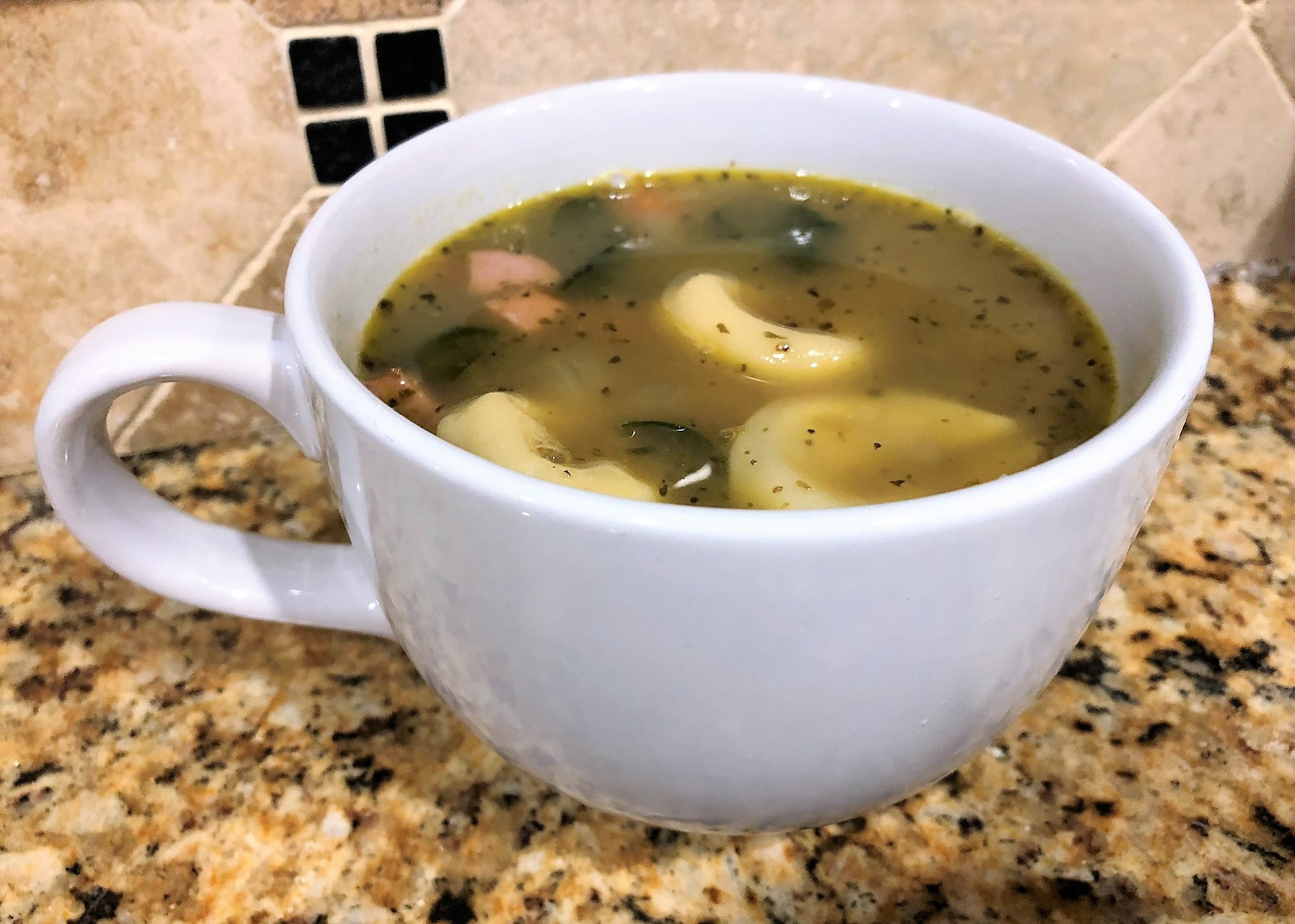 The soup I made this week is Sausage & Tortellini Florentine. This is a scrumptious soup but hardy enough for a full meal. Here’s how to make it: