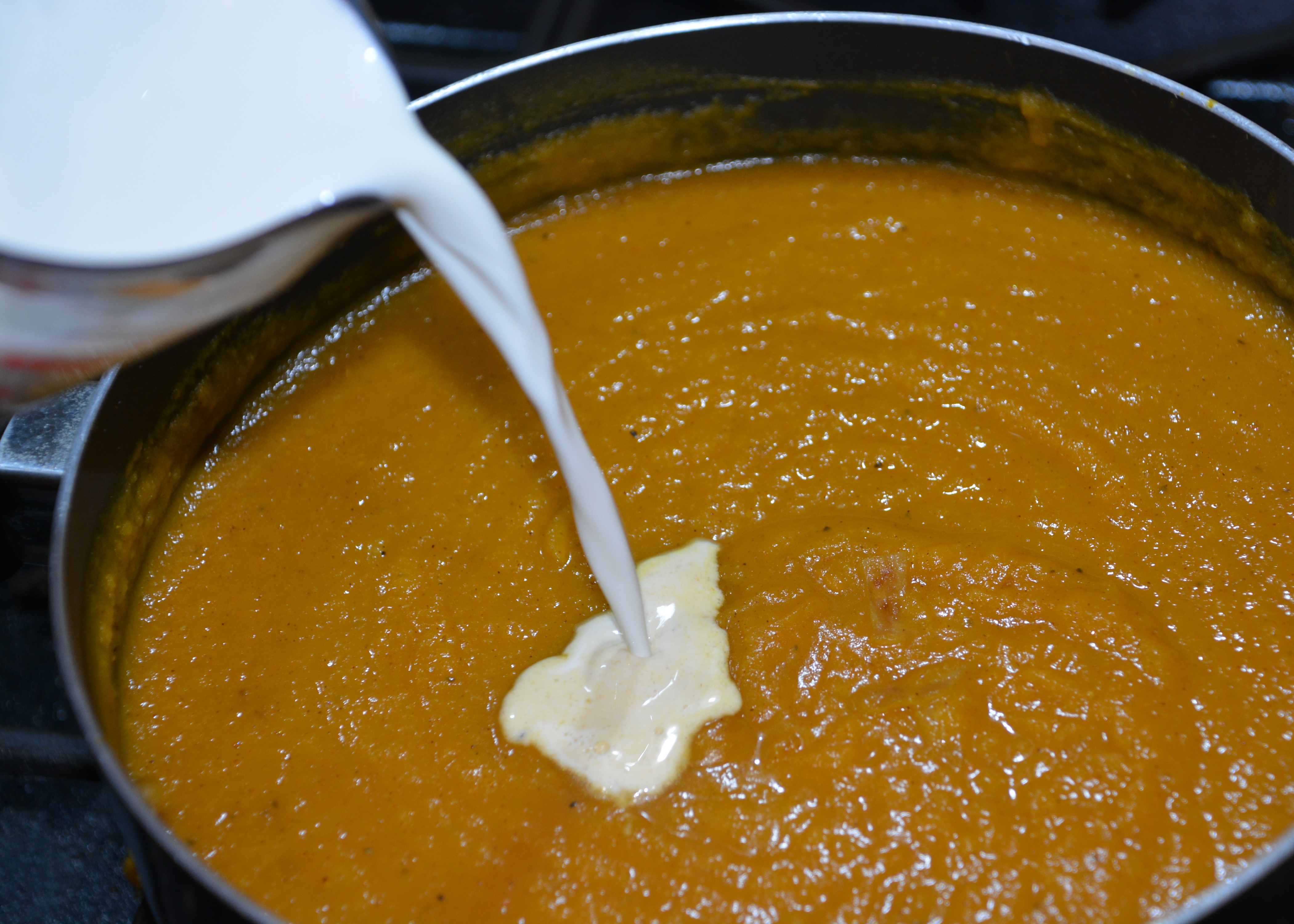 The final step to the destination of warmth and yumminess is to add in the half and half. You could use heavy cream but I choose to got ever-so-slightly lighter and use the half and half.