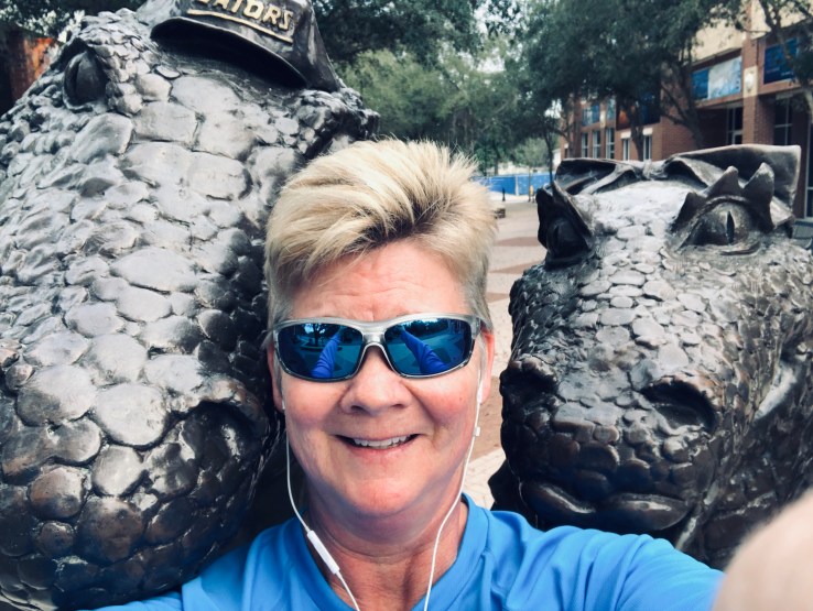 Today’s run took me around the University of Florida campus. This is a beautiful place to run on an early Saturday morning. It’s quiet and there are very few of those young, energetic, non-wrinkled people walking around. If I did the same run during the week I would have to jog over to Psychology for some self-esteem therapy. I know I’m slow but even I hate being passed.