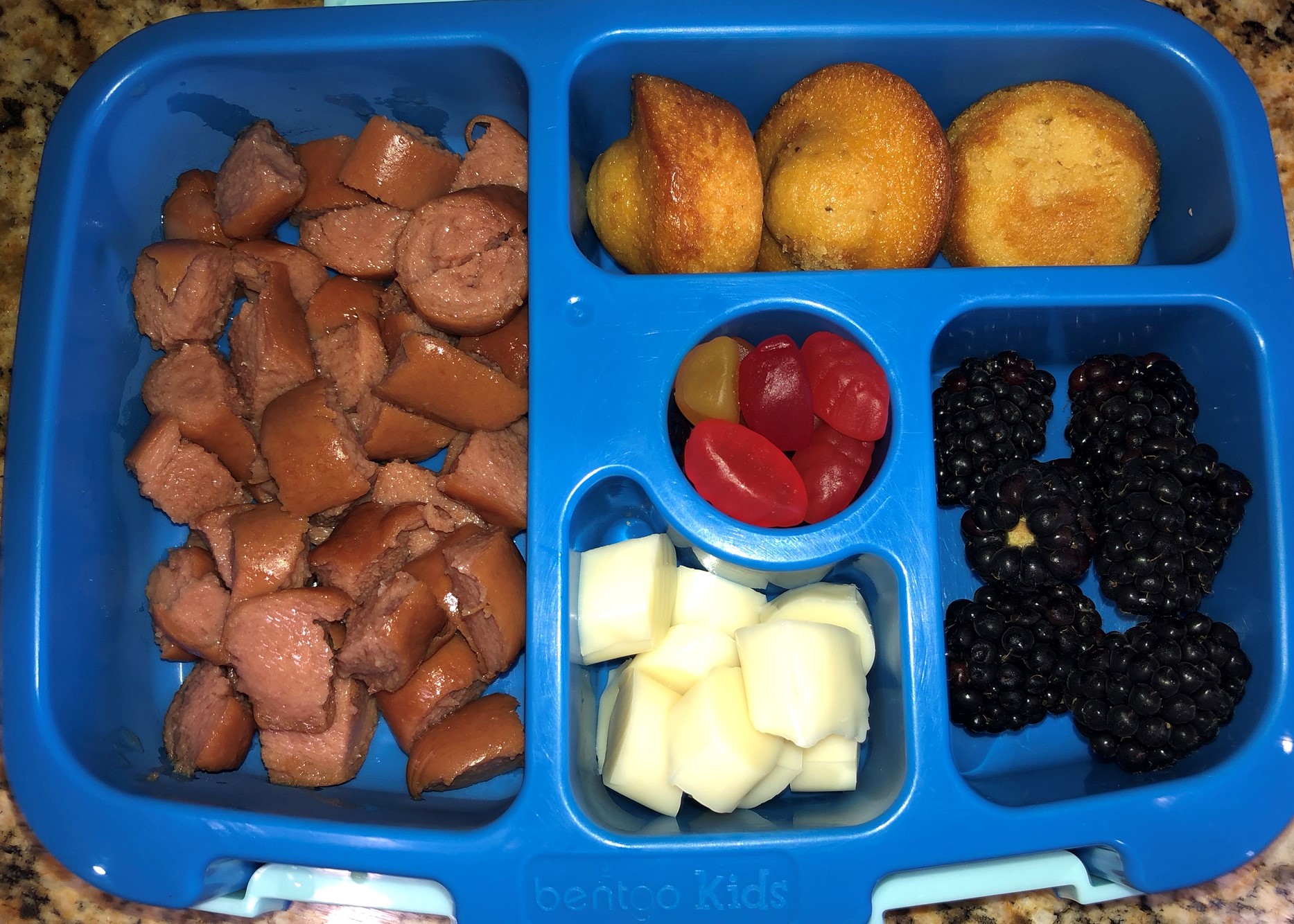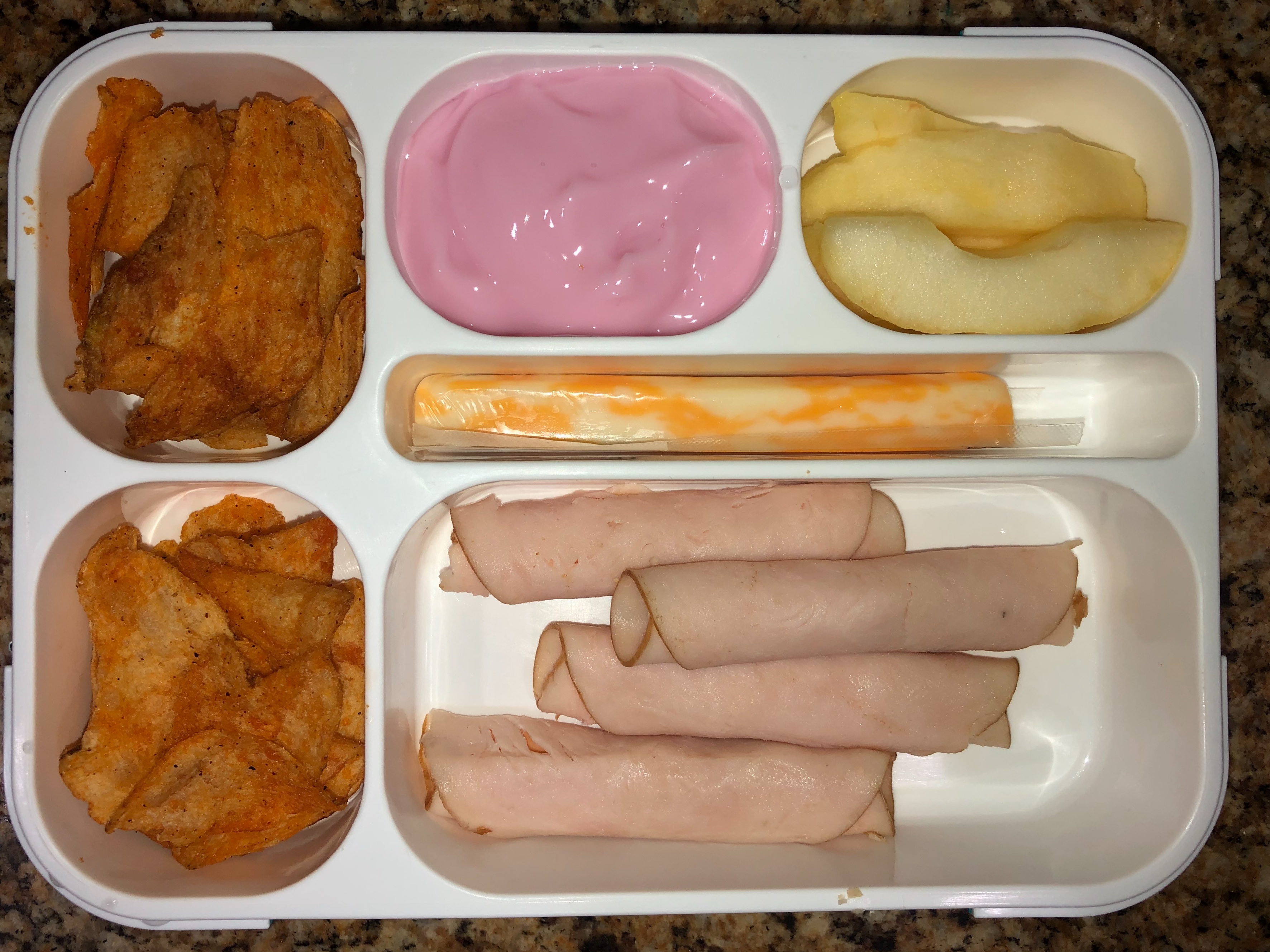 My oldest got the same as I did as a kid. My second son, however, changed everything about how I pack lunch. Riley is a picky eater but does like a variety. I started packing a lot of different things for him to choose from and eventually discovered the Bento way. I purchase the lunchboxes on Amazon and I buy two different sizes. This is what I get for Riley who is in elementary school and here is the one I get for my toddler. They are the perfect sizes for each of them.