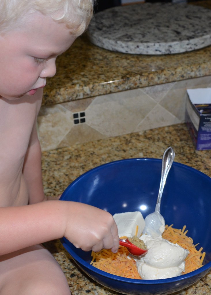 First things first, have a cute little helper to pour in the ingredients. He loves to help Mommy in the kitchen.